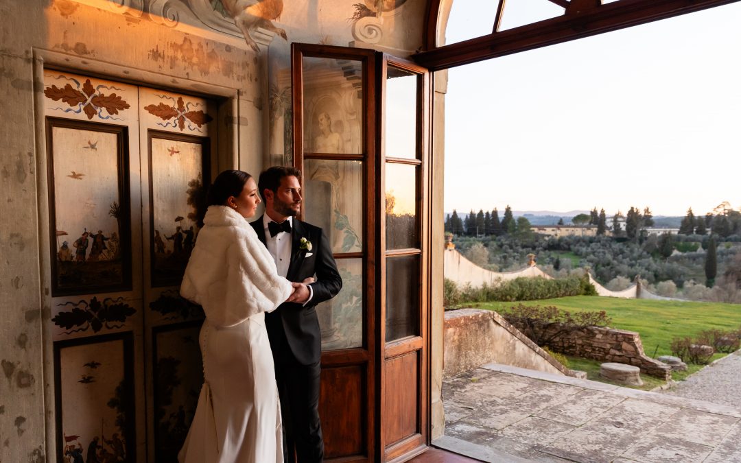 Is there anything more romantic than a winter wedding? I, who am an incurable romantic, find winter weddings particularly elegant, especially if the setting is a beautiful Medici Villa nestled in the Tuscan hills between Chianti and Florence. I was therefore very of happy to help this married couple as wedding coordinator of their wedding. What do I think was the most romantic moment of the wedding? Well, they were several, but the one that struck me the most was the first look. The first look represents the exact moment when the wedding couple meets in a secluded place in the venue they have chosen to celebrate their wedding, just before starting the ceremony. It’s a truly magical moment of great emotion and intimacy. A precious moment to be immortalized with photos and video, to relive that same emotion again and again and again….